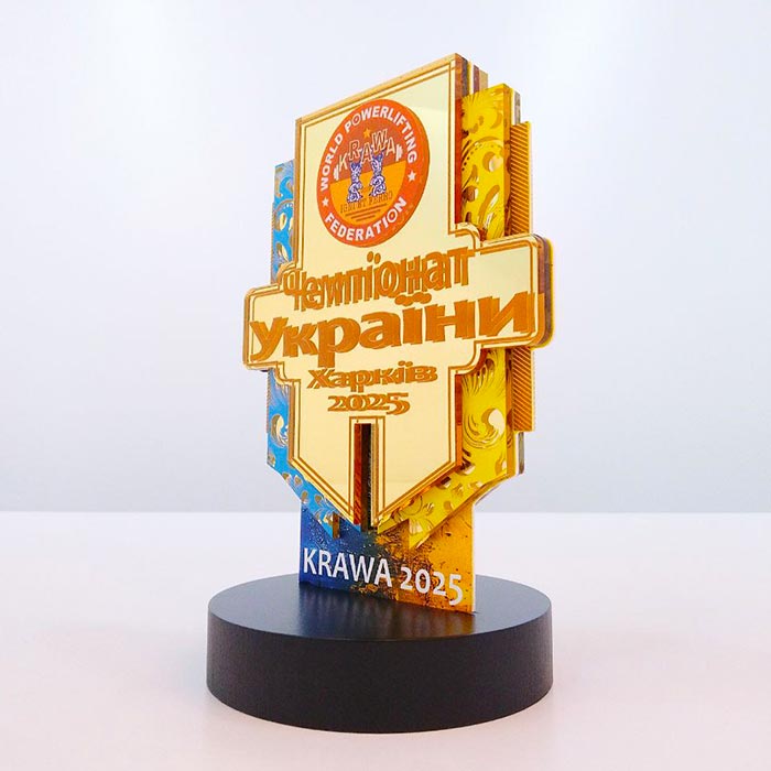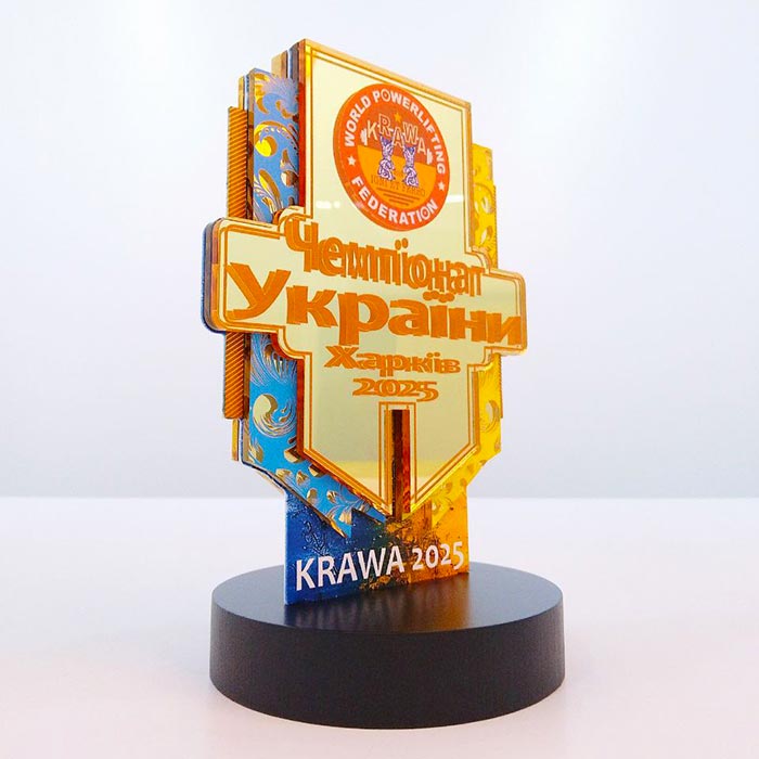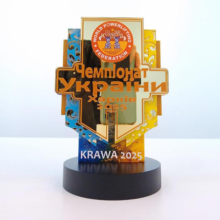 Артприз с гордостью представляет высококачественный и впечатляющий кубок, созданный специально для выдающихся спортивных событий, таких как «Чемпионат Украины» по пауэрлифтингу. Этот трофей является воплощением силы, воли к победе и национальной гордости, что делает его идеальной наградой для сильнейших атлетов.
