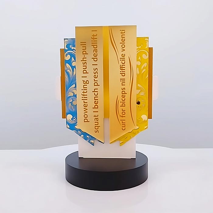 Многослойная конструкция: Приз состоит из нескольких слоев акрила и металла, что создает впечатляющий объемный эффект и придает ему солидности.