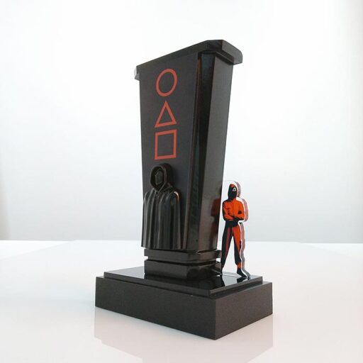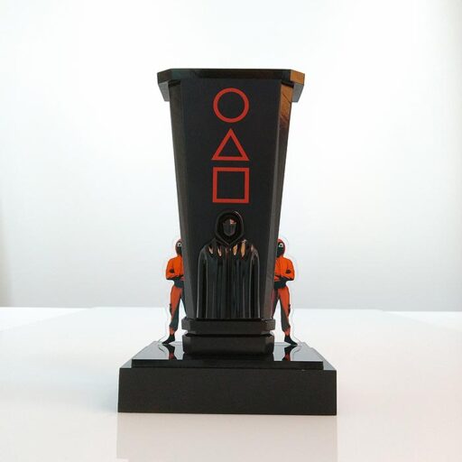 Приз «SQUID GAME 3» — это эксклюзивная, уникальная награда, созданная для тематических корпоративных мероприятий, игр или турниров, вдохновленных эстетикой популярного сериала «Игра в Кальмара». Его минималистичный черный дизайн с ярко-красными акцентами передает атмосферу игры.