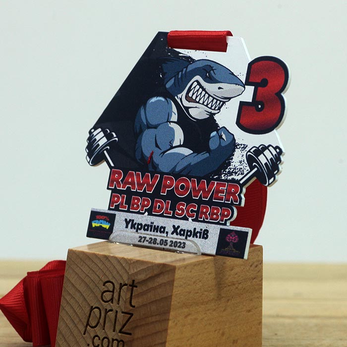Медаль металлическая RAW POWER размер 85х75мм 605M23