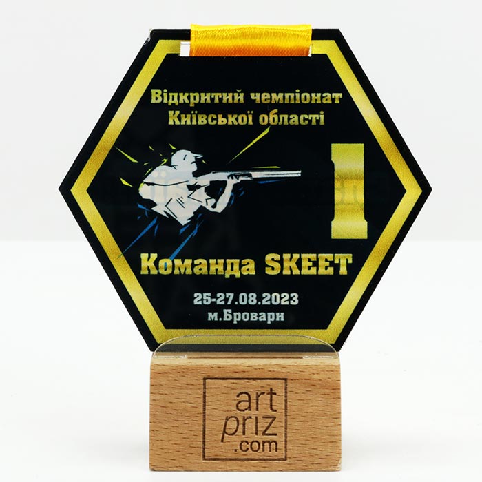 Медаль выполнена из акрила, с нанесением УФ печати.