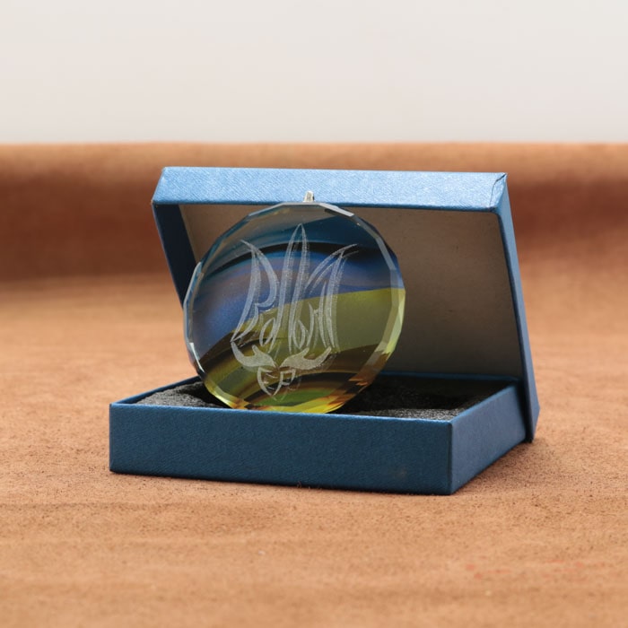 Стеклянная премиум медаль изготовлена как образец из толстостенного стекла 10мм с нанесением высококачественной УФ-печати или гравировки.