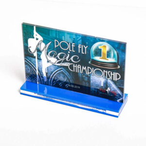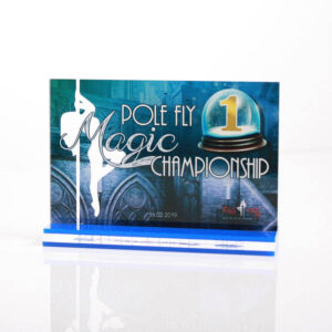 Индивидуальная спортивная награда из акрилового стекла POLE FLY – отличный приз для участников различных спортивных мероприятий: отраслевых, любительских, профессиональных и других. Можно видеть, что приз достаточно больших размеров, достаточно весомый в руке, с оригинальным дизайном, который оставит память о мероприятии и эмоциях, которые обладал наградой. Выполнено из качественного акрилового стекла. Если подробно разобрать дизайн награды, то можно отметить, что форма классическая: прямоугольная акриловая стеклянная пластина располагается на прямоугольной платформе подставки. Полностью предмет исполнен в синих и темно-синих тонах. На основной стеклянной пластине прописывается название спортивного мероприятия, номер места которого вручается эта награда участнику мероприятия и дата. Этот приз еще долго будет мотивировать обладателя новых свершений, составит декорацию для вашего дома и всегда напомнит о ярких эмоциях важного дня.