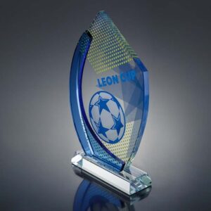 Стеклянная премиум награда (приз) изготовлена как образец из толстостенного стекла с нанесением высококачественной УФ-печати или гравировки.