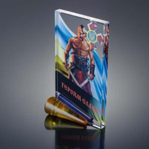 Стеклянная премиум награда (приз) изготовлена как образец из толстостенного стекла с нанесением высококачественной УФ-печати или гравировки.