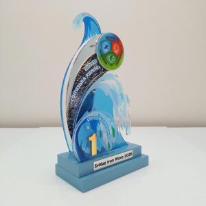 Название события на базе: На двухступенчатой основе приза выгравировано полное название соревнований: «Svitiaz Iron Wave 2025».